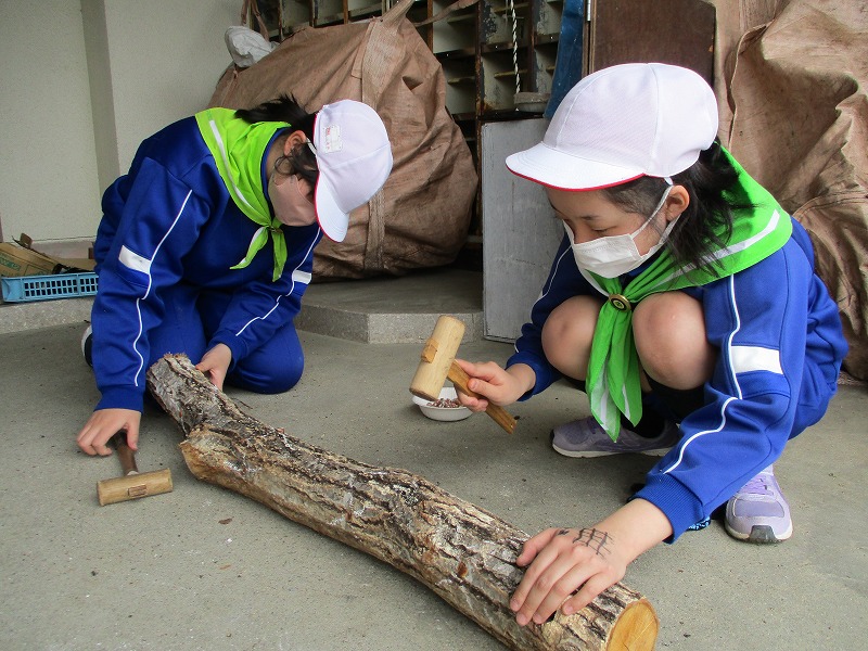その後,椎茸の駒打ちとパンジーの植え替えを行いました。