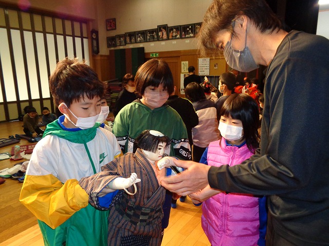 今田人形交流会~3年 11月1日 龍江小・千代小・千栄小の4校で今田人形館を訪れました。 地域に伝わる文化に触れ, それを守り伝えようとしてくれている方々と交流することができました。 友だちと協力して,なかなか上手に動かしているように見えますよ。 人形の仕掛けにも驚きましたね。 <前 次> 編集者2022-11-04T16:56:31+09:002022年11月02日|