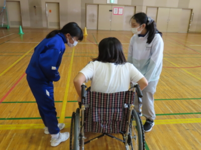 車いすを押したことがある児童はいましたが、車いすに乗るのはみんな初めてでした。
