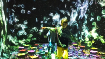 ↑ チームラボにて。音と光の空間の中を楽しみました!